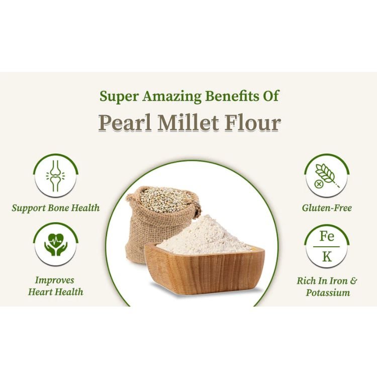 Bajra flour also known as bajra atta, bajre ka atta or pearl millet flour, is a type of flour made from ground pearl millet grains. This cereal grain is native to Africa and has been a staple food in many countries in that region for thousands of years. It is also known as bajra in India, where it is widely consumed. Bajra atta is considered a nutritious grain, thus bajra flour nutrition includes high in protein, dietary fibre, and several essential vitamins and minerals.