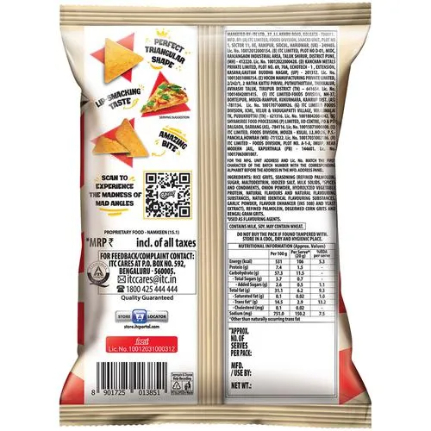 Cant seem to get enough of pizza? No worries. You can now enjoy it in the form of a snack as well! Just pop open a pack and experience the delicious flavour of pizza bursting with every crunchy bite of Bingo! Mad Angles Pizza. Perfect triangular shape with the lip-smacking flavour of everyone's favourite food Pizza. Mamma Mia! Made from a corn base, the unique texture of Bingo! Mad Angles adds to the crunchy fun. Satisfy your snack cravings anytime, anywhere with yummy Mad Angles Pizza Flavour.