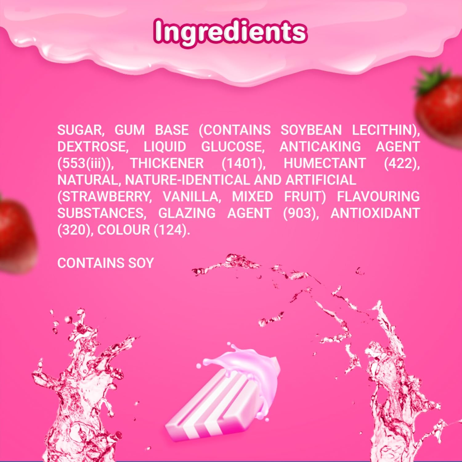 - FRESH BURST OF FLAVOUR: Loaded with a burst of strawberry flavour, Boomer gum is truly a mood changer.