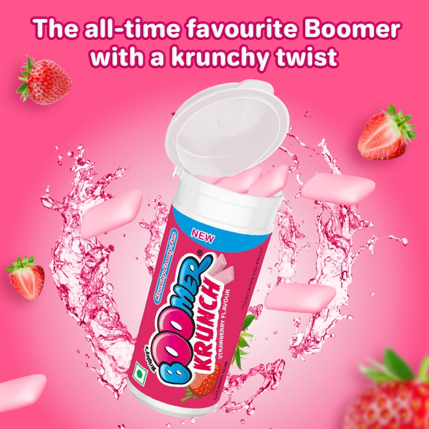 - IRRESISTIBLE CHEWS: Your childhood favourite bubble gum – Boomer chewing gum now comes with a delicious fruity krunch.