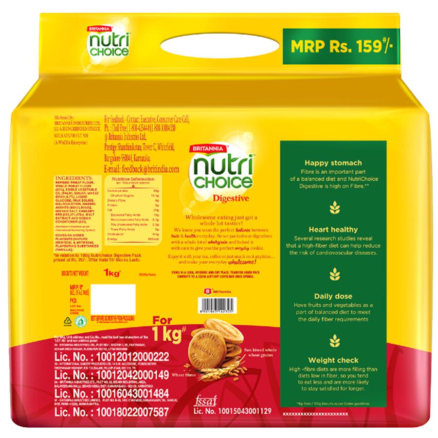 Britannia NutriChoice Digestive biscuits are high fibre biscuits packed with the richness of wheat flour and bran. With every bite, you experience the coarseness of this fibre-rich biscuit, baked to precision, a perfect tea-time partner.