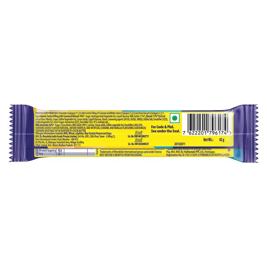 Enjoy the all-new 5 Star Oreo with crunchy Oreo biscuits surrounded by flowing caramel. A delicious indulgent combination of chocolate and caramel with a twist of Oreo. Enjoy Longer-lasting chewy multi-textured chocolatey experience with Cadbury 5 Star Oreo Chocolate Bar.