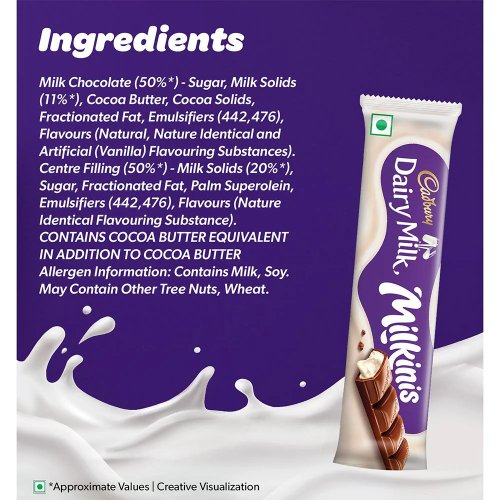 The Cadbury Dairy Milk Milkinis is a creamy chocolate treat that combines the rich, smooth taste of classic Dairy Milk chocolate with a soft and delicious milk crème filling inside. It offers a perfect blend of chocolatey sweetness and milky smoothness, giving a melt-in-the-mouth experience with every bite. Designed as a fun and indulgent snack, Milkinis is great for enjoying on the go or sharing, making it a delightful twist on the traditional Dairy Milk chocolate.