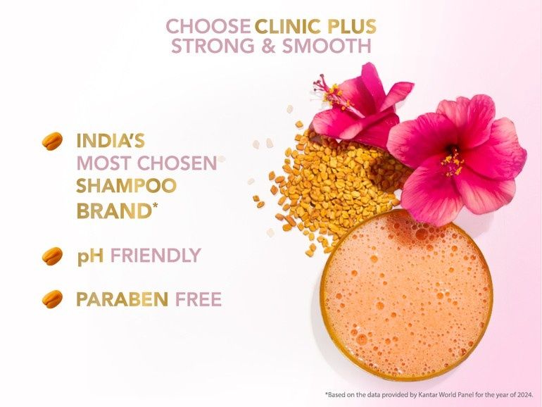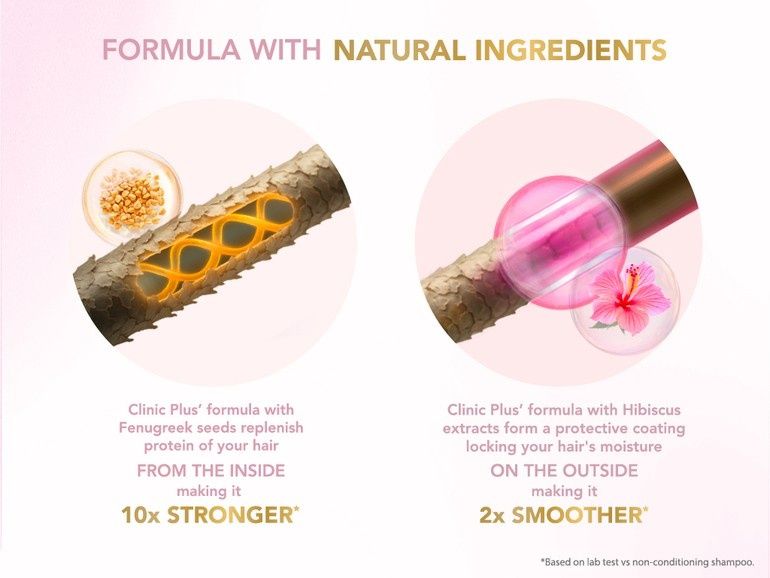 This shampoo from Clinic Plus is a comprehensive hair care product that combines the benefits of fenugreek protein, hibiscus extract, and other nourishing ingredients. It helps to strengthen hair roots and reduce breakage, while also providing smoothness and manageability. The formula is designed to work with damaged or weak hair, promoting healthy and resilient locks. This shampoo cleanses hair thoroughly without stripping it of its natural oils. Regular use can lead to improved hair texture, reduced frizz, and enhanced shine. The addition of fenugreek protein helps repair and fortify the hair structure, while hibiscus extract adds moisture and softness. Suitable for regular use, this shampoo is a great choice for those looking to improve their hair's overall health and appearance.
