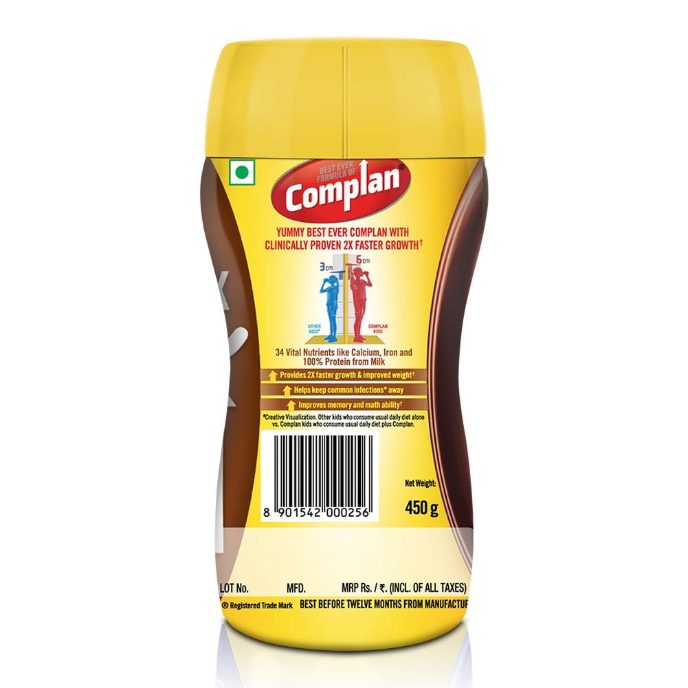 - Complan provides 2X height and increased weight as it has 34 vital nutrients like Calcium and Iron and 100% protein from milk.