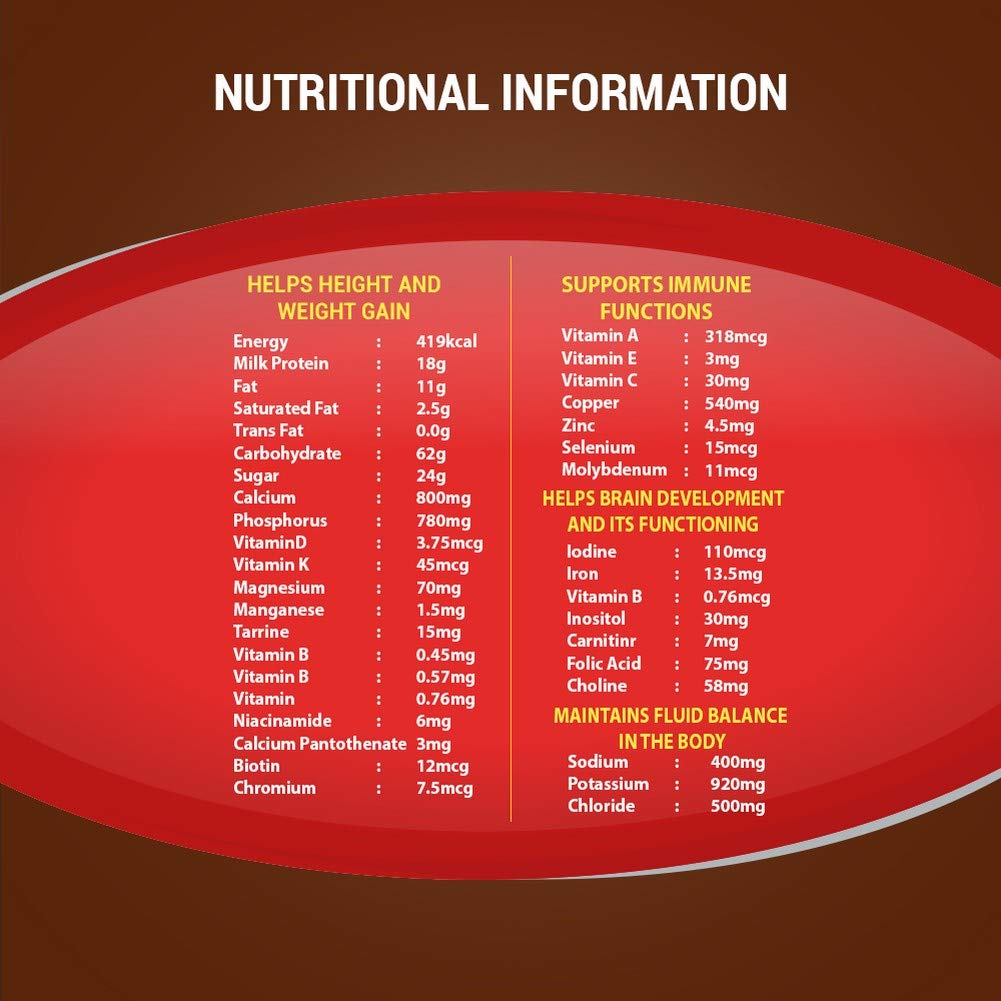 It contains 34 vital nutrients like Calcium and Iron which helps children gain the right height and weight, supports brain development and helps maintaining fluid balance in the body. Pro Immunity nutrients in Complan also support immune functions to keep children away from common infections like common cold and related cough and fever.