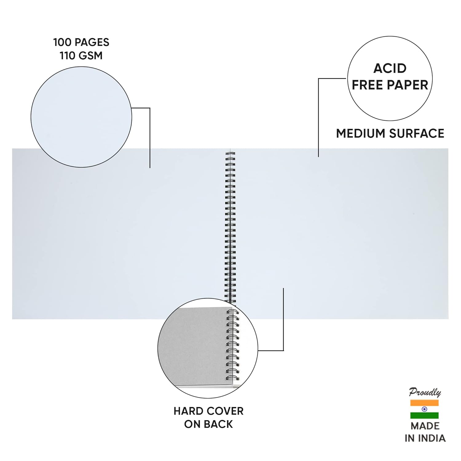 Made with premium, acid-free paper, it supports a variety of mediums such as graphite, charcoal, ink, and light watercolors without bleeding or smudging. The sturdy spiral binding ensures easy page-turning and allows the book to lie completely flat for a seamless drawing experience. A tough outer cover keeps your work safe whether you're at home, in the studio, or on the move.