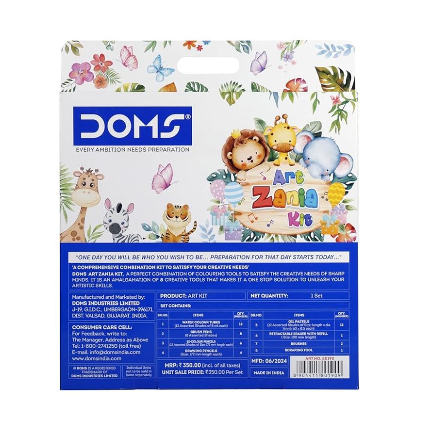 The DOMS Art Zania Kit is a specialized art kit designed for artists, students, and hobbyists who are passionate about drawing and coloring. It includes a variety of high-quality art supplies that cater to different artistic needs.