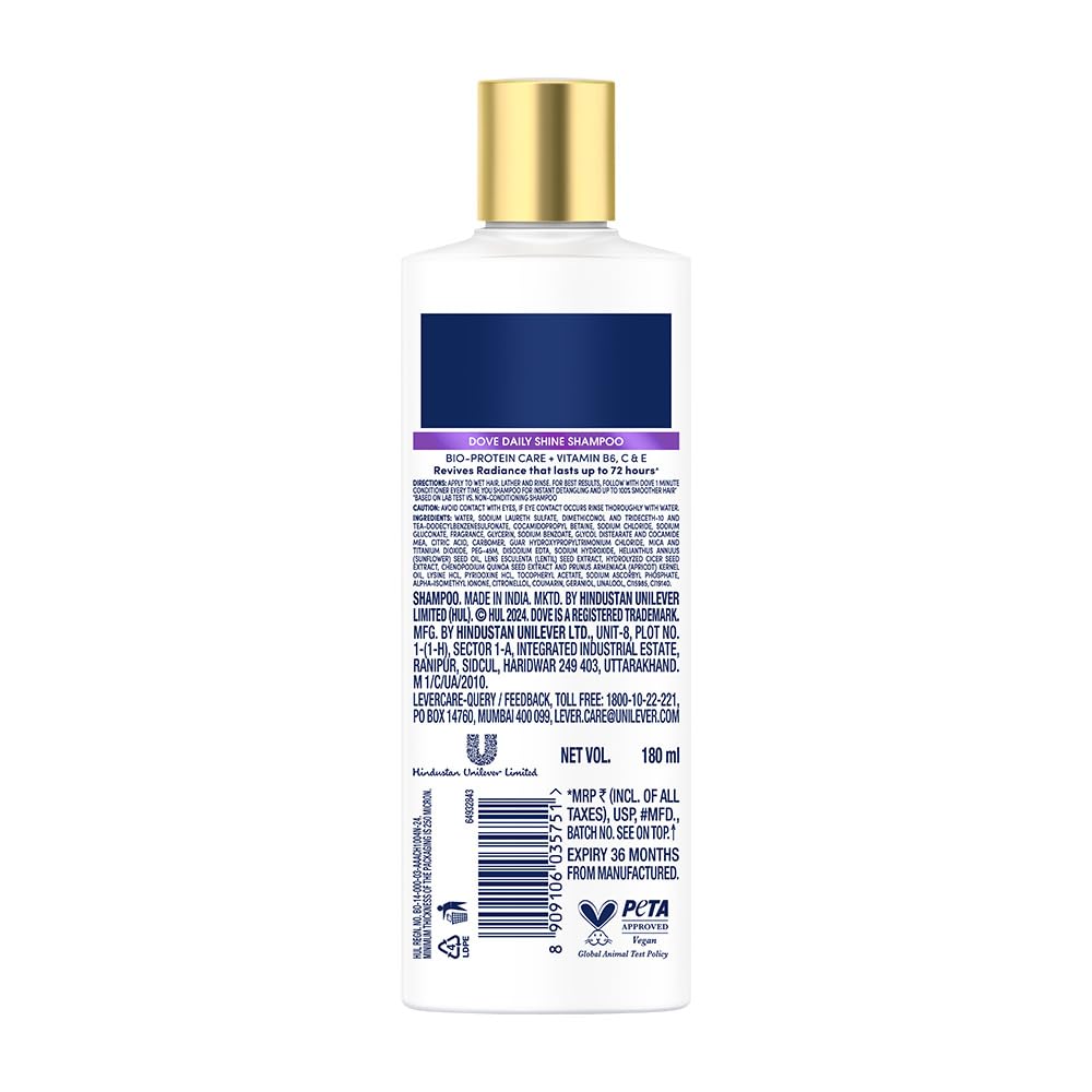 Dove Daily Shine ShampooDove daily shine shampoo with micro moisture serum builds a protective shield around the hair fiber and defends your hair from daily wear and tear. It is a gentle hair cleanser that keeps your hair looking healthy and lustrous. It is mild on your scalp but a perfect protection from the aggression your hair faces every day, in the heat and dust. Buy the dove daily shine shampoo, right away and bring back the life to your dull hair! use it regularly to shield your beautiful hair and get the desired results. The mystery of how to get shiny hair isn't a tricky one to solve. The key to getting the shiny, silky hair we all long for is making sure your hair is nourished, right from the start of your routine.