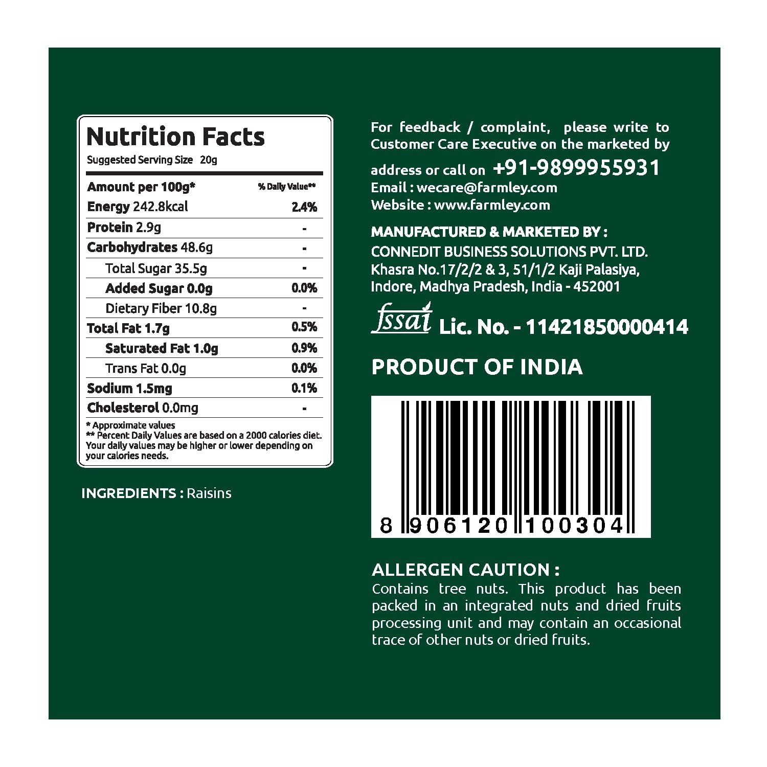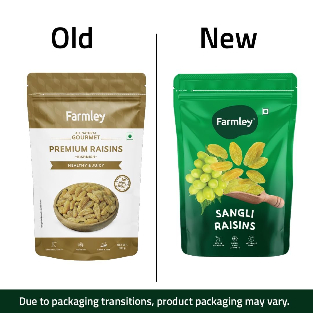 Green long raisins by Farmley are extremely delicious and a popular snack that gives you an instant sugar burst and energy. They are essentially used in various recipes like desserts, namkeen, and other lip-smacking dishes. We bring to you green long raisins packed hygienically with the best quality right at your door with our product raisins (or kishmish) can be used to prepare Indian dishes like kheer, pulao, and meethe chawal. It is a handy snack item and a great addition to home-baked cookies and cakes. It can also be added to your breakfast cereals, yogurt, or as salad toppings. These packaged raisins are ideal for gifting during festivals as well.