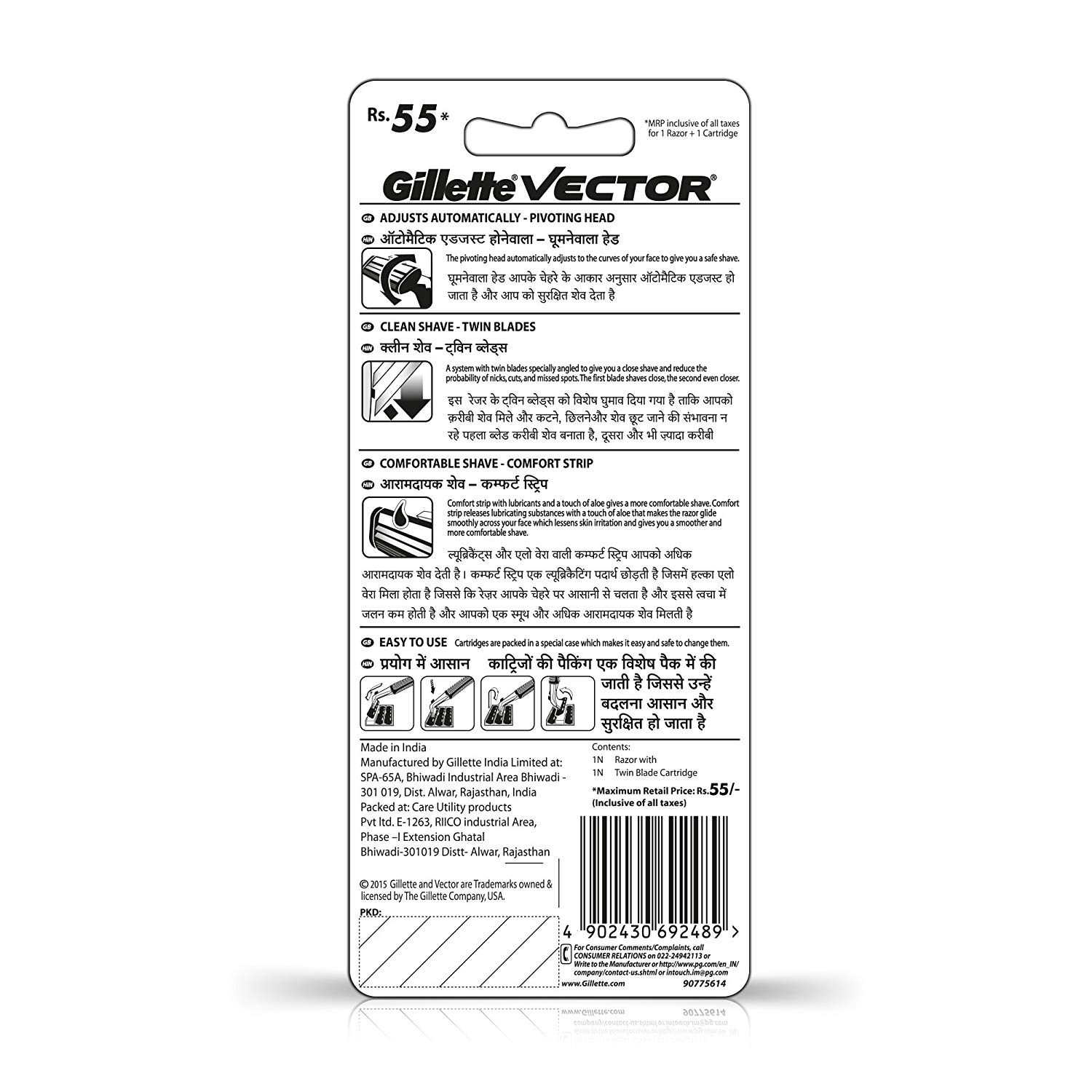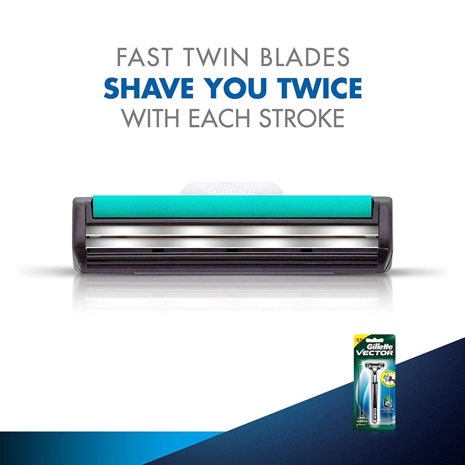 Gillette vector razor with adjust automatically pivoting head fast twin blades shave you twice with each stroke eliminating irritating repeat strokes for a faster shave than with a double edge blade. Twin Blade System for a Clean Shave.