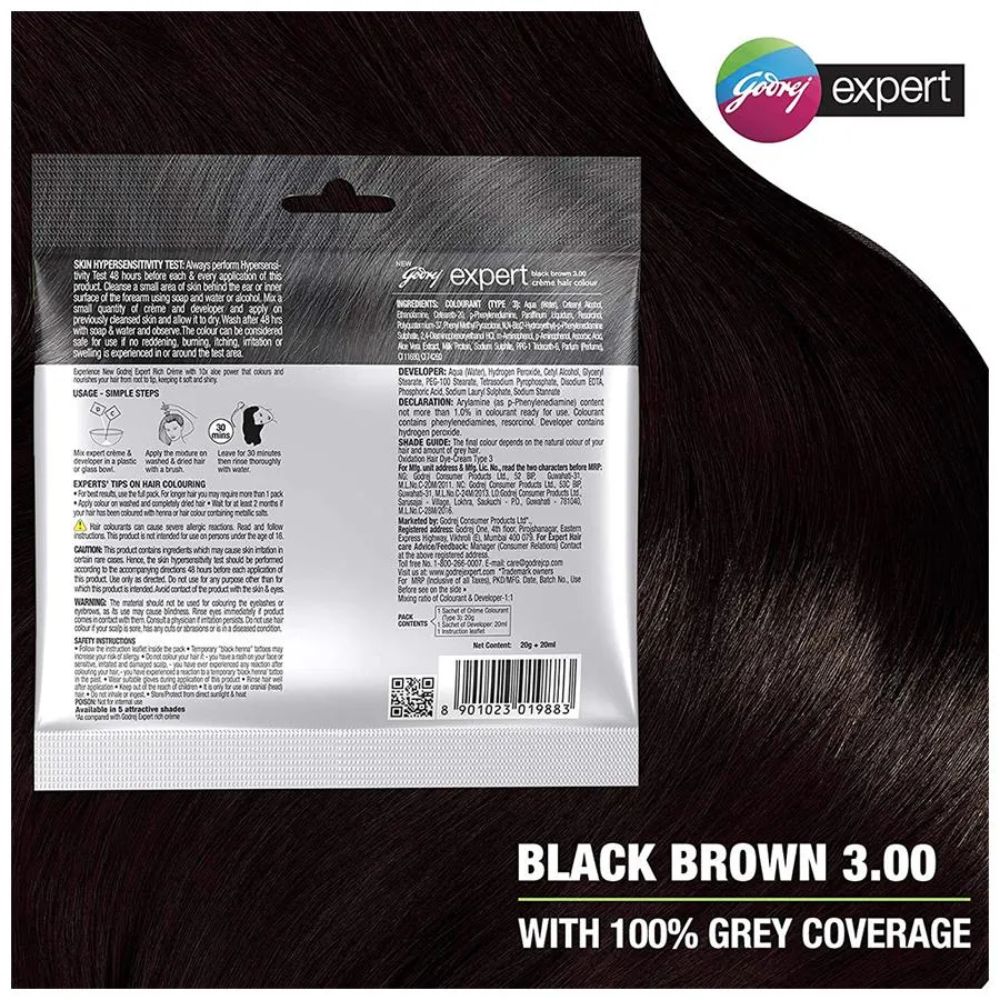 Godrej Expert Rich Creme Hair Colour (Black Brown 3.00) - (20gm + 20ml) Single Use Pouch