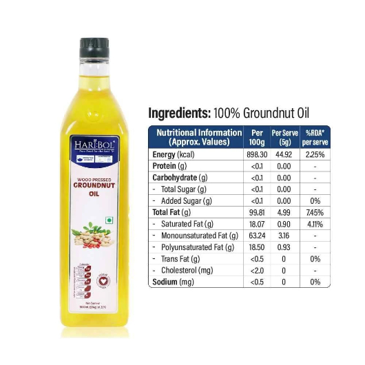 Experience the rich, nutty flavour and numerous health benefits of HariBol Wood Pressed Groundnut Oil. Extracted from the finest quality groundnuts using traditional wood pressing techniques, this oil retains its natural aroma, flavour, and nutrients. Rich in heart-healthy monounsaturated fats, vitamin E, and antioxidants, it not only enhances your culinary creations but also supports overall wellness. With no additives or preservatives, HariBol Wood Pressed Groundnut Oil is a wholesome choice for all your cooking and personal care needs.