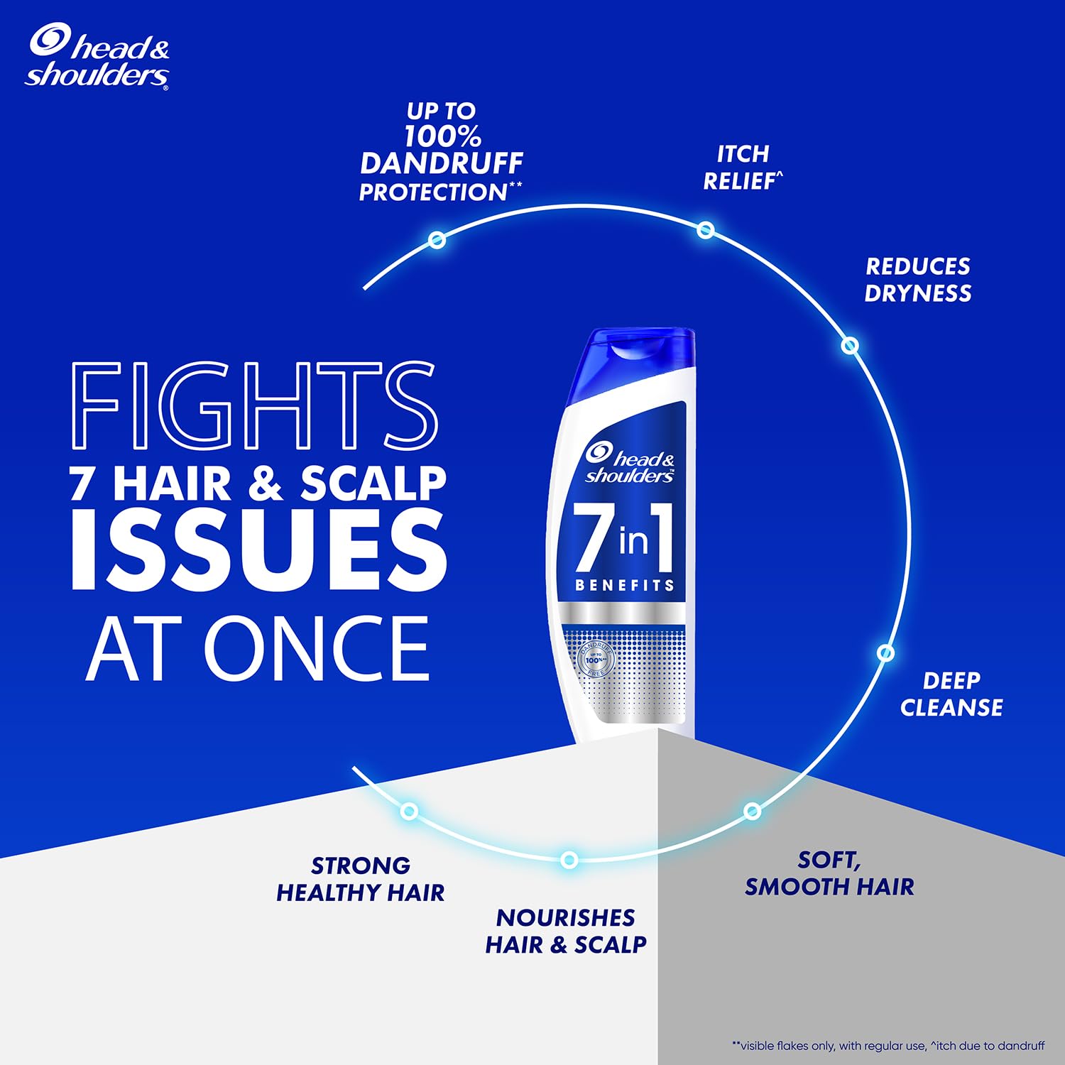 An unhealthy scalp requires a shampoo that goes the extra mile to treat and nourish hair. Head & Shoulder’s 7in1 is clinically proven to have a multi-action formula which provides complete solution for an unhealthy scalp - it goes to the root, effectively removes dandruff, and treats scalp itchiness, oiliness, dryness, and redness. Suitable for both, men and women. Head & Shoulders’ new anti-dandruff 7in1 shampoo targets 7 scalp related problems, treats them and provides high conditioning for softer hair with a superior, refreshing feel. It provides up to 100% dandruff protection and results in stronger, healthier hair.