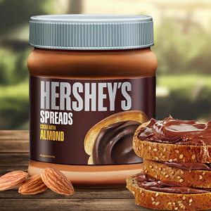 Presenting Hershey's Spreads! Enjoy the delectable taste of chocolate with the goodness of real almonds. Enjoy the delicious taste of Hershey's spreads with bread, roti, paratha, idli, dosa, cake, biscuit, fruit, waffle, doughnut, croissant and much more. Spread the happiness with Hershey's!