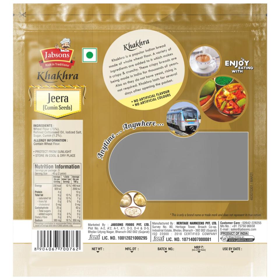 · Thin and crispy whole wheat flatbread seasoned with aromatic jeera (cumin) seeds.