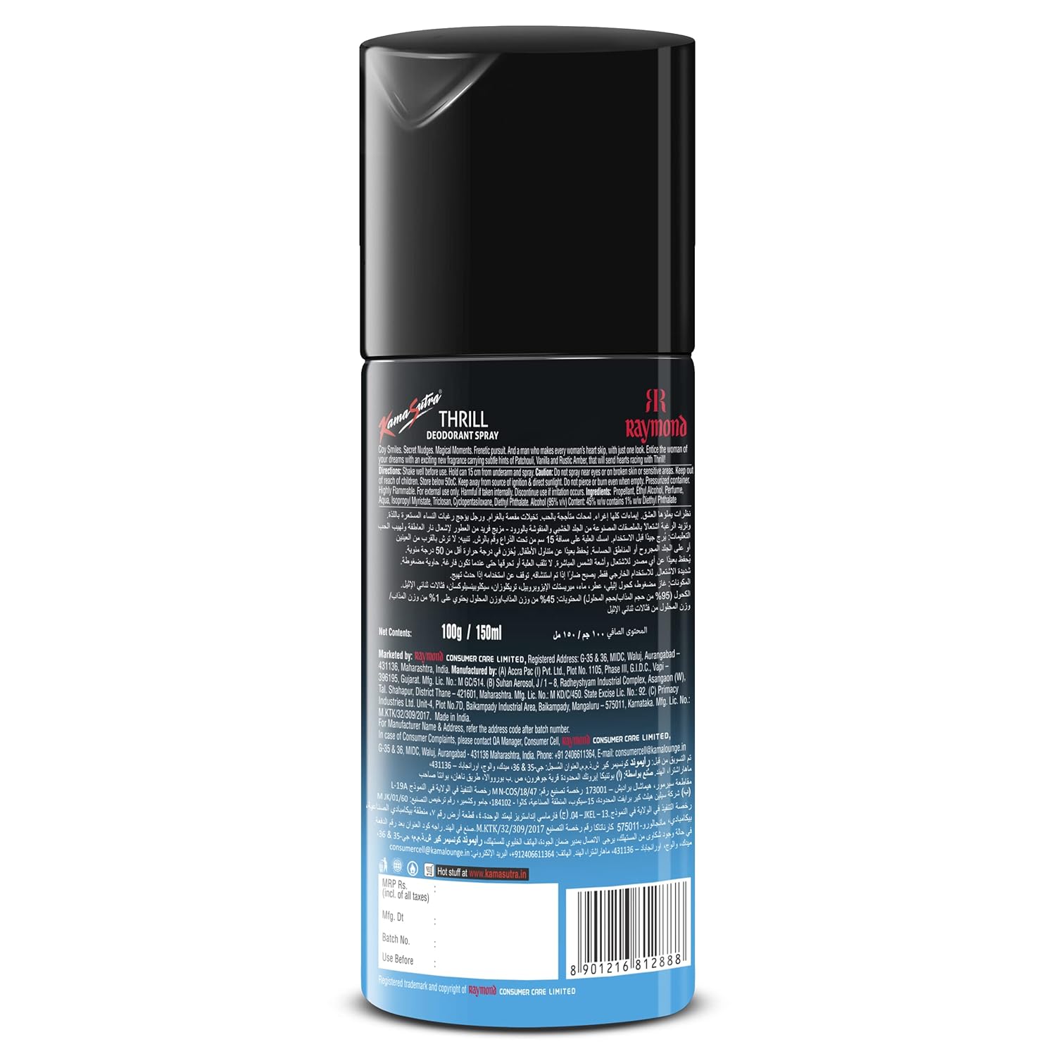 Coy Smiles.Secret Nudges.Magical Moments.Frenetic Pursuit.And a man who makes every woman's heart skip,with just one look. Entice the woman of your dreams with an exciting new fragrance carrying subtle hints of Patchouli,Vanilla & Rustic Amber,that will send hearts racing with Thrill!