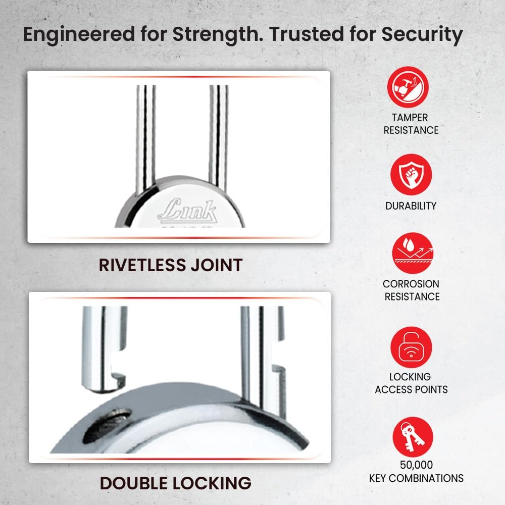 This lock is a perfect lock to secure your home and office. The strong and durable lock looks stylish and is made to work well with all types of homes, commercial establishments and more. The lock is easy to use and operate as it has a reversible key. A reversible key makes the operation convenient and hassle-free. The body of the lock is clinched and rivetless which makes it more strong as compared to a rivetted body.