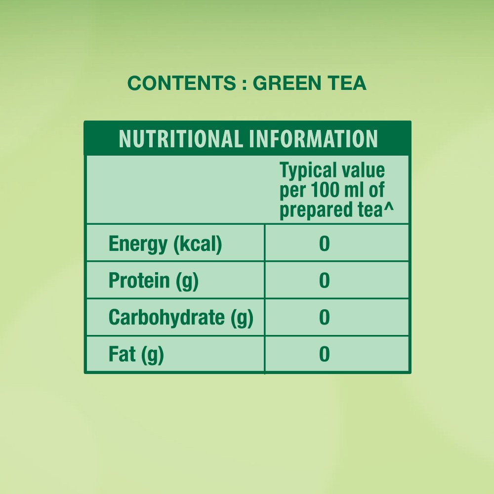 *When consuming without milk and sugar. ^Having 7-8 cups of Green tea/day (≈600 mg catechins) for 8-12 weeks helps reduce waist circumference. Note: Lipton Green Tea has ≈20-30 mg caffeine/cup. Expectant and nursing mothers should limit their total daily caffeine to max 200 mg.