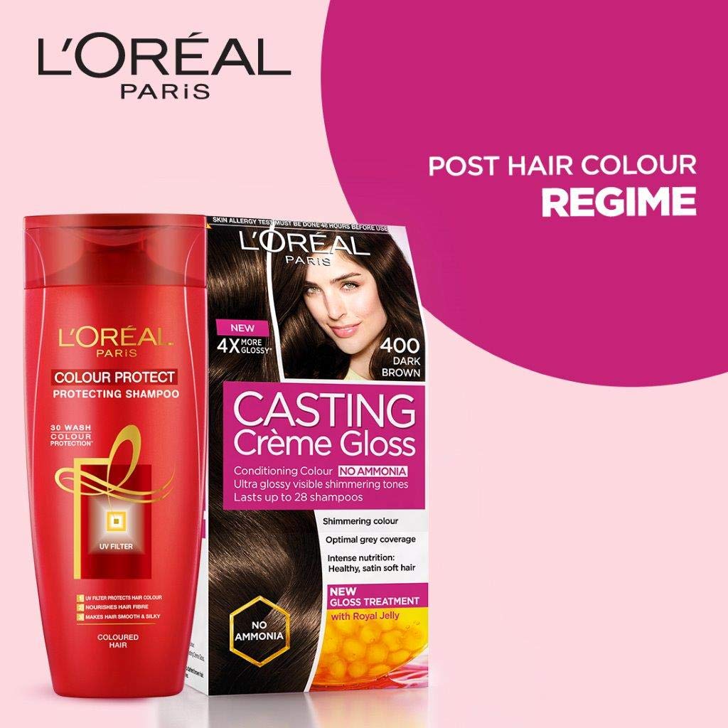 Available in 11 glossy shades. Easy to apply with the non-drip crème formula in just 20 minutes, even for beginners. The delicate fragrance makes colouring a luxurious treat. Get natural looking results and ultra-glossy colour with Casting Creme Gloss by L'Oreal Paris India.