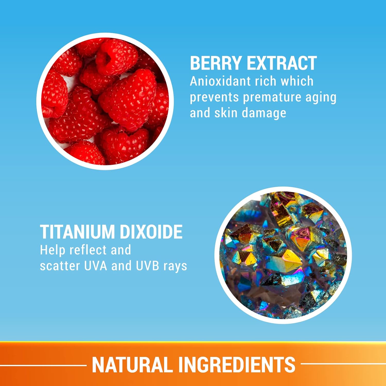 - INFUSED WITH BERRY EXTRACTS - The sunscreen has berry extracts that inhibit melanin formation resulting in brighter skin.