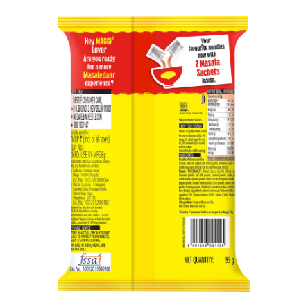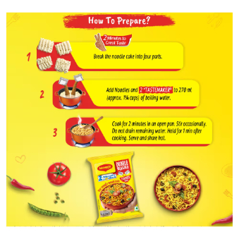 Maggi Double Masala comes with two masala sachets instead of one, giving you double the flavor and spice in every bite. It has the same soft noodles you love, but with a richer, spicier taste thanks to the extra masala made from over 20 spices. Just cook the noodles as usual, mix in both sachets, and enjoy a bold and flavorful meal in just 2 minutes. Perfect for those who like their Maggi extra tasty and masaledar!