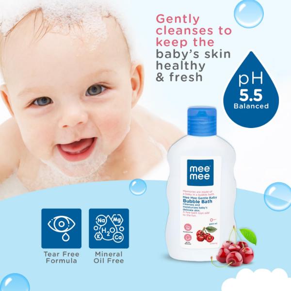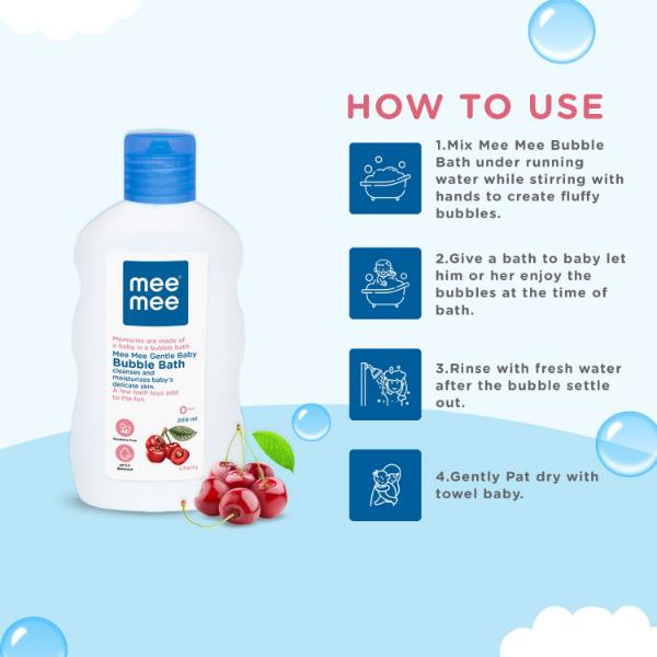 • Mee Mee Foamy Baby Body Wash & Bubble Bath with Cherry and Fruit Extracts.