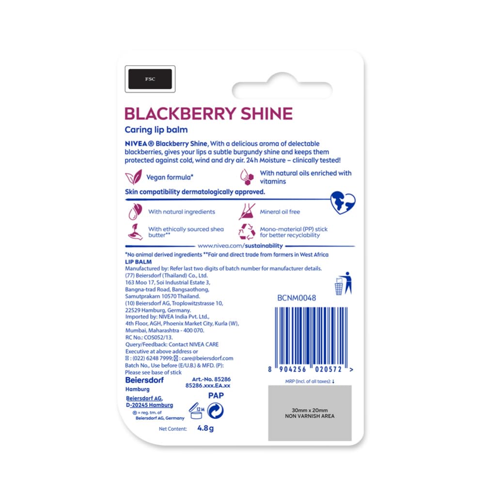 Experience the rich care of NIVEA Blackberry Shine Lip Care Balm!