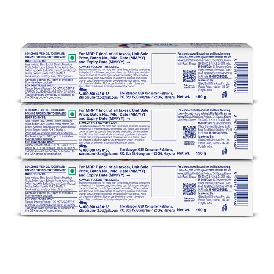 Sensodyne Fresh Gel Toothpaste - 150gm x 3pcs combo