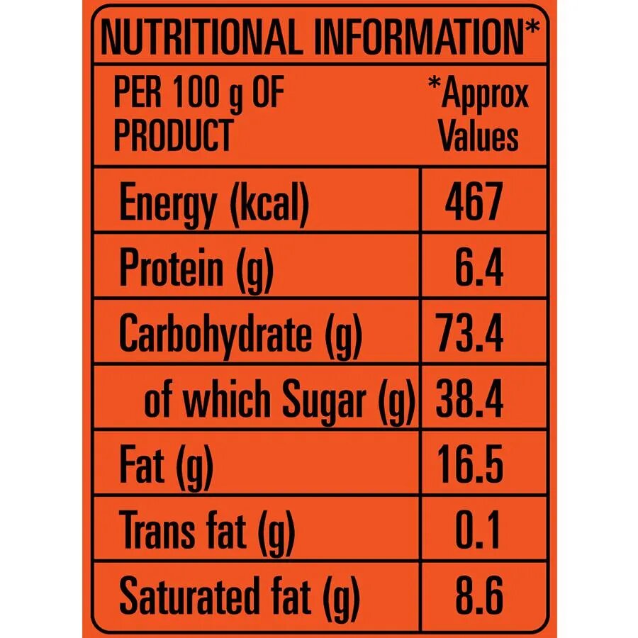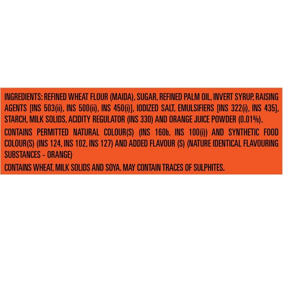 Wheat Flour, Sugar, Edible Vegetable Oil, Invert Syrup, Raising Agent (INS 503 (ii) Baking Powder, Cocoa Solids (0.56%), Edible Common Salt, Emulsifier (INS 322), Milk Solids and Dough Conditioner (INS 223), Contain Permitted Synthetic Food Colour (s) (INS 122) and Added Flavours (S) (Artificial Flavouring Substance.