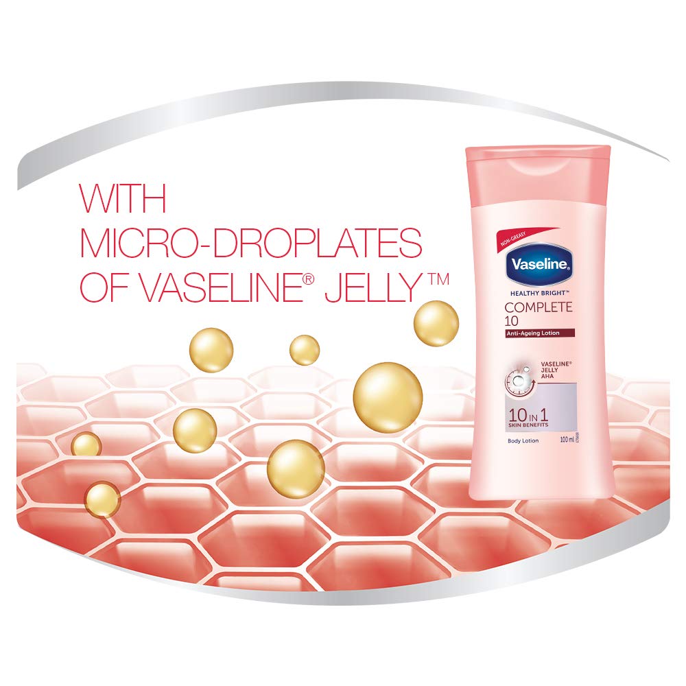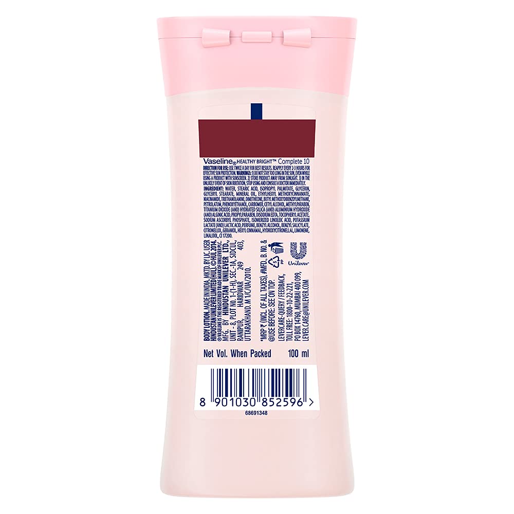 Having healthy, glowing skin is a vital part of your overall health. Vaseline believes that everyone deserves a healthy skin. But healthy skin is not something you get by masking problems or through quick fixes. With sun exposure your skin produces melanin which can lead to skin damage, dull and uneven skin tone. Vaseline Healthy Bright Daily Brightening, our best skin brightening body lotion helps restore dry damaged skin and that gives visibly glowing skin in 2 weeks. With micro-droplets of Vaseline Jelly, the lotion helps heal* skin. The lotion also contains Vitamin B3, that is known to inhibit the production and transfer of melanin, it helps bring back your skin’s healthy radiance. Triple sunscreens provide brightness protection by fighting UVA and UVB rays to protect your skin's brightness from future damage. A daily lotion which is light, fast absorbing and non-sticky lotion making it ideal for you to use throughout the year. Now you can get healthy, even-toned and glowing skin in just 2 weeks!