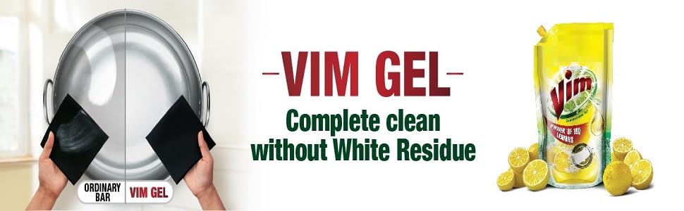 - Vim gel gives you a pleasent cleaning experience with its refreshing lemon fragrance.